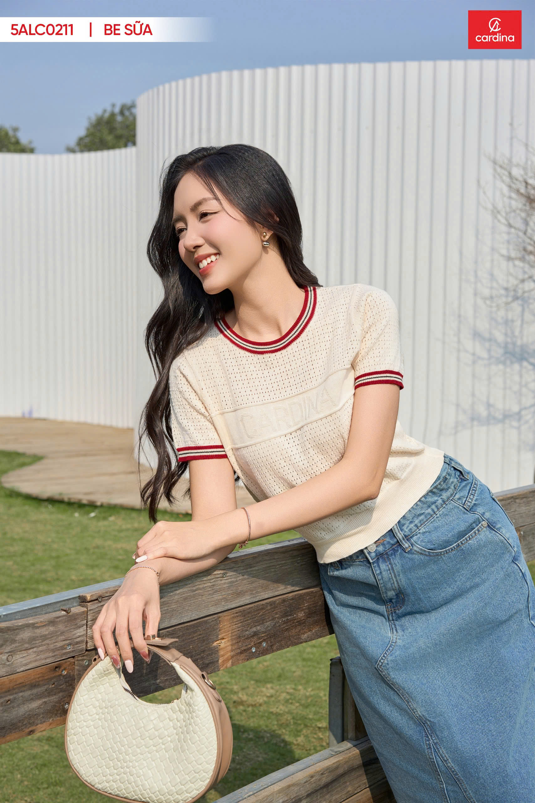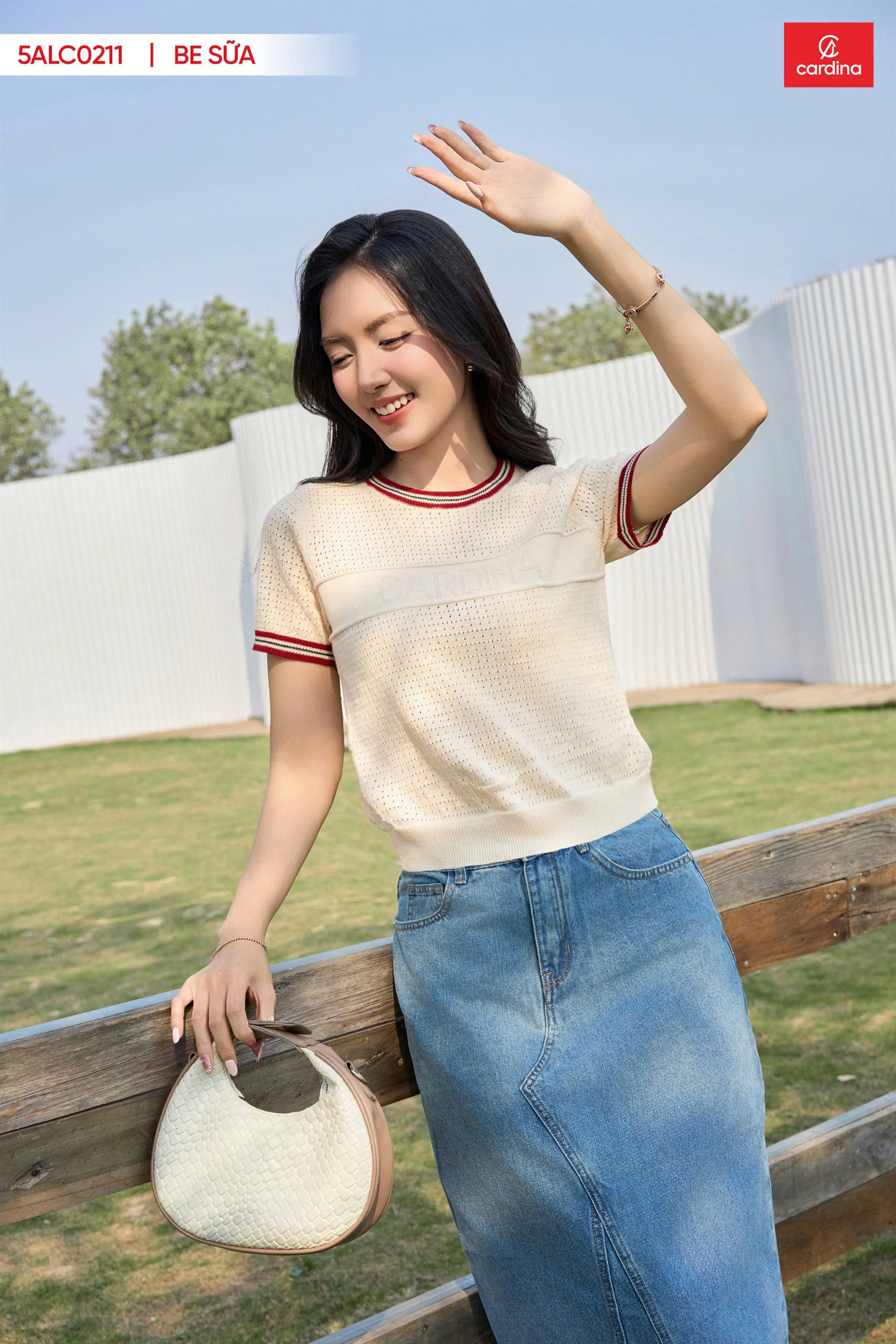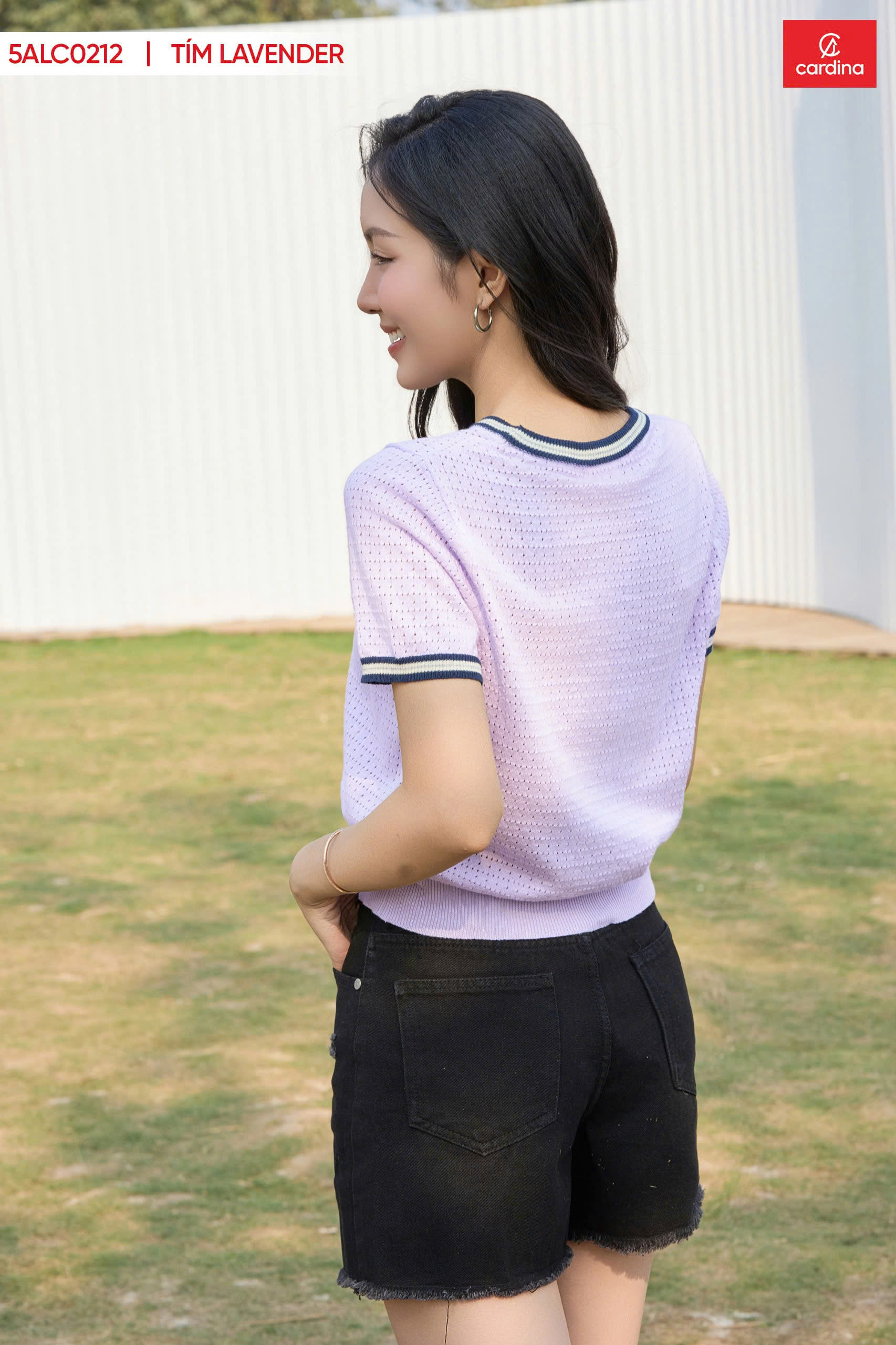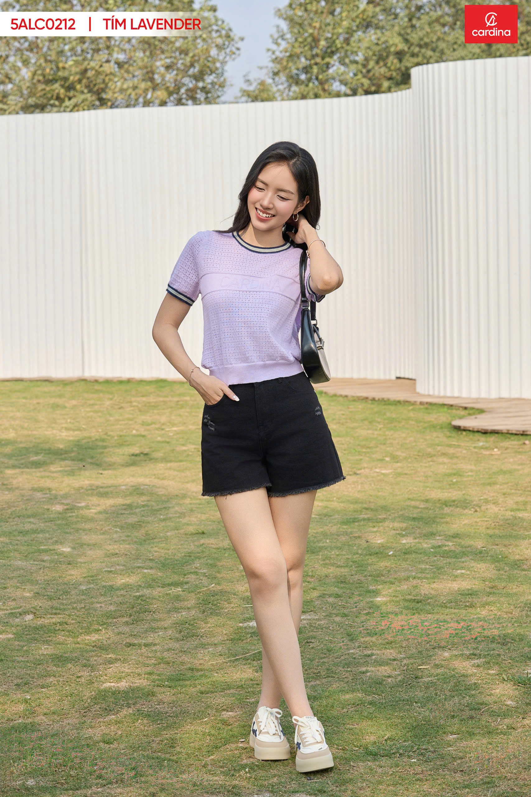 - Dáng áo bo gấu tay ngắn, cổ tròn trẻ trung, năng động.