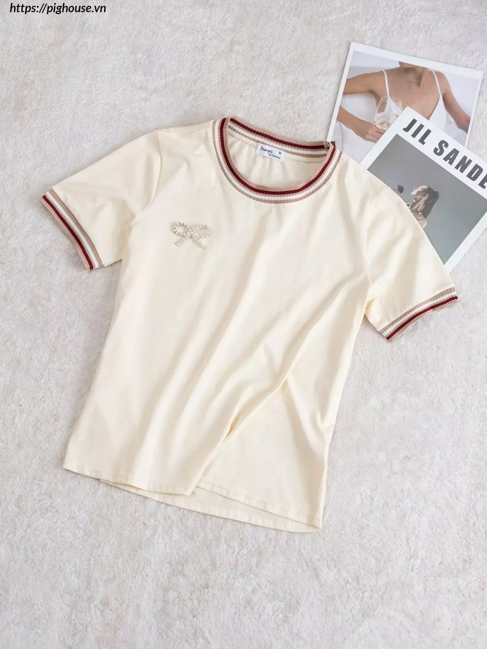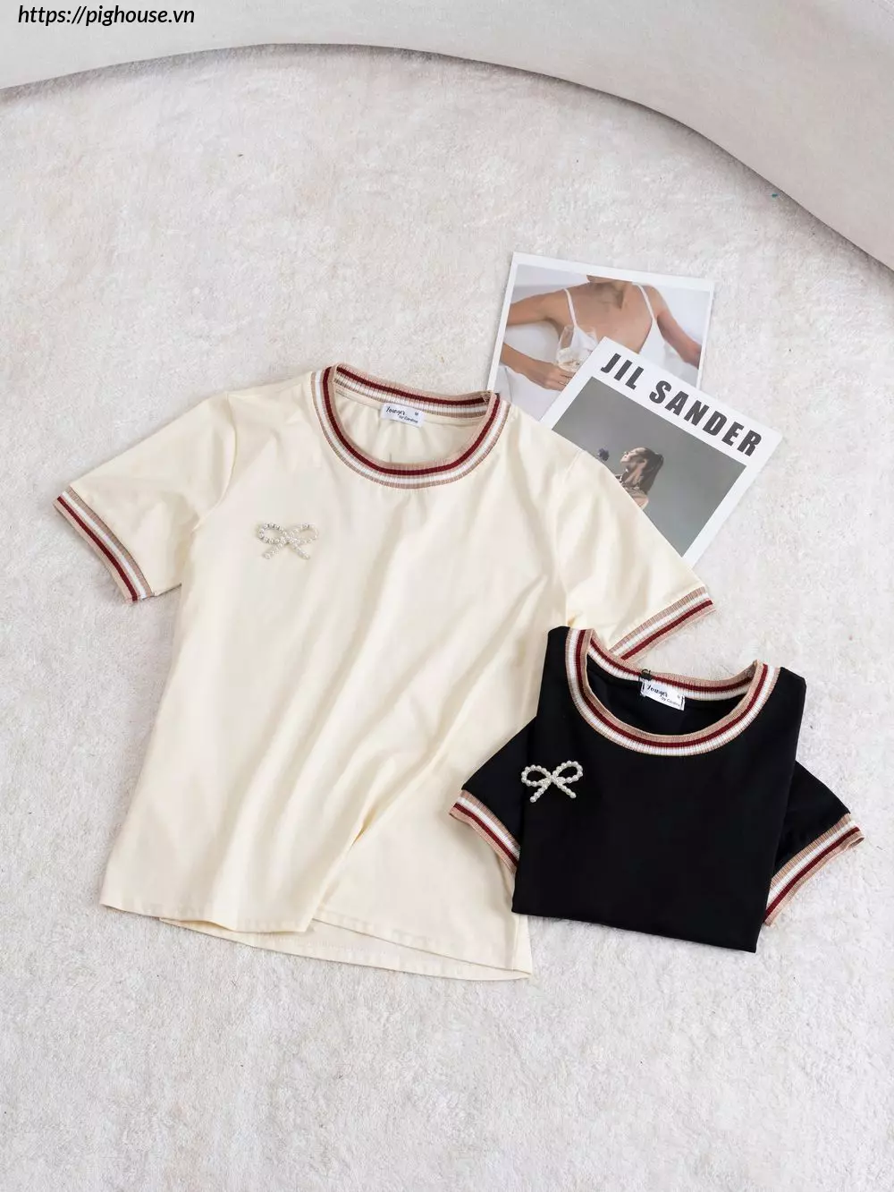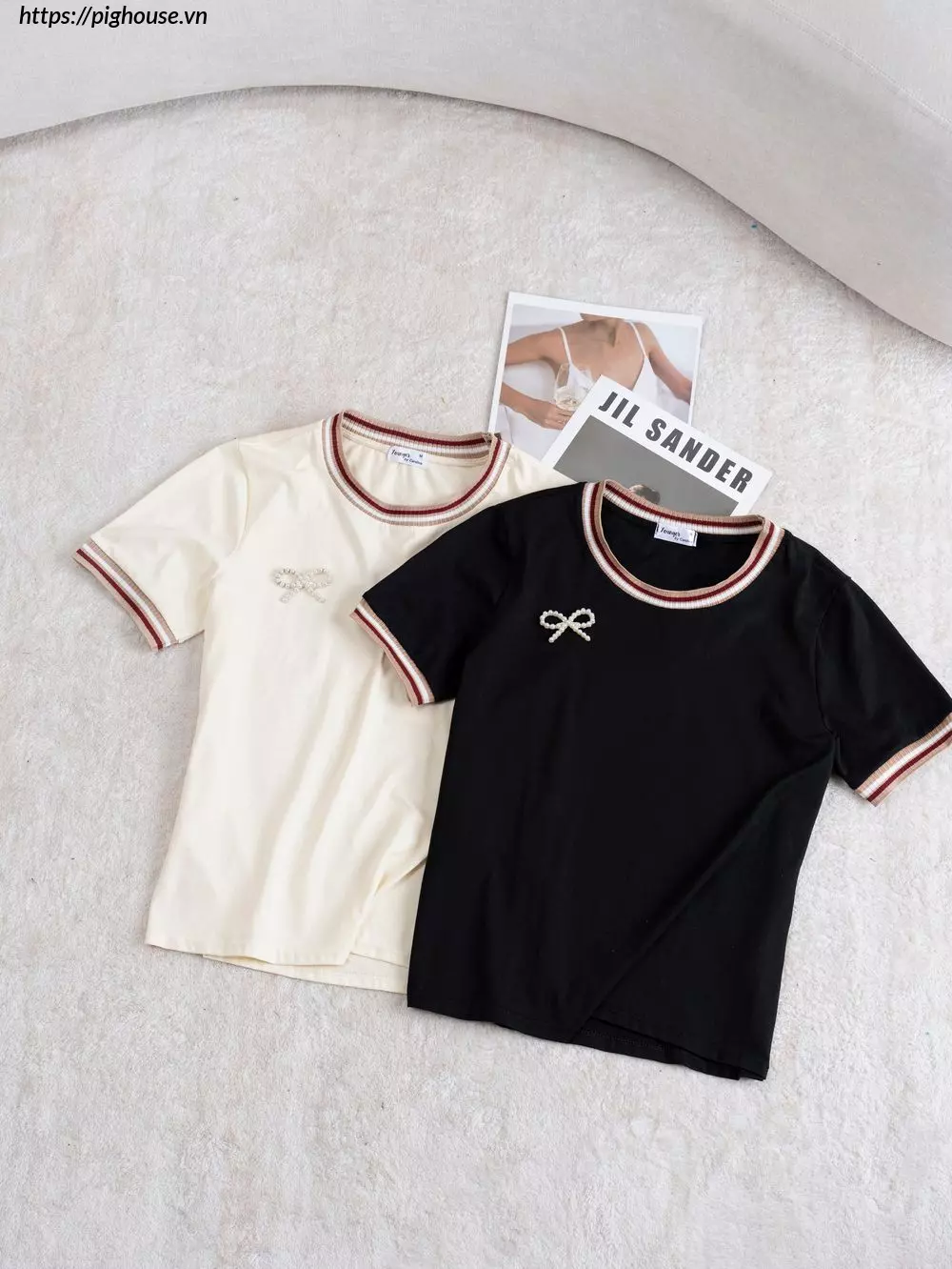 Áo Phông Cotton Bo Viền Nơ Cardina – Item Không Thể Thiếu Trong Tủ Đồ Của Nàng!