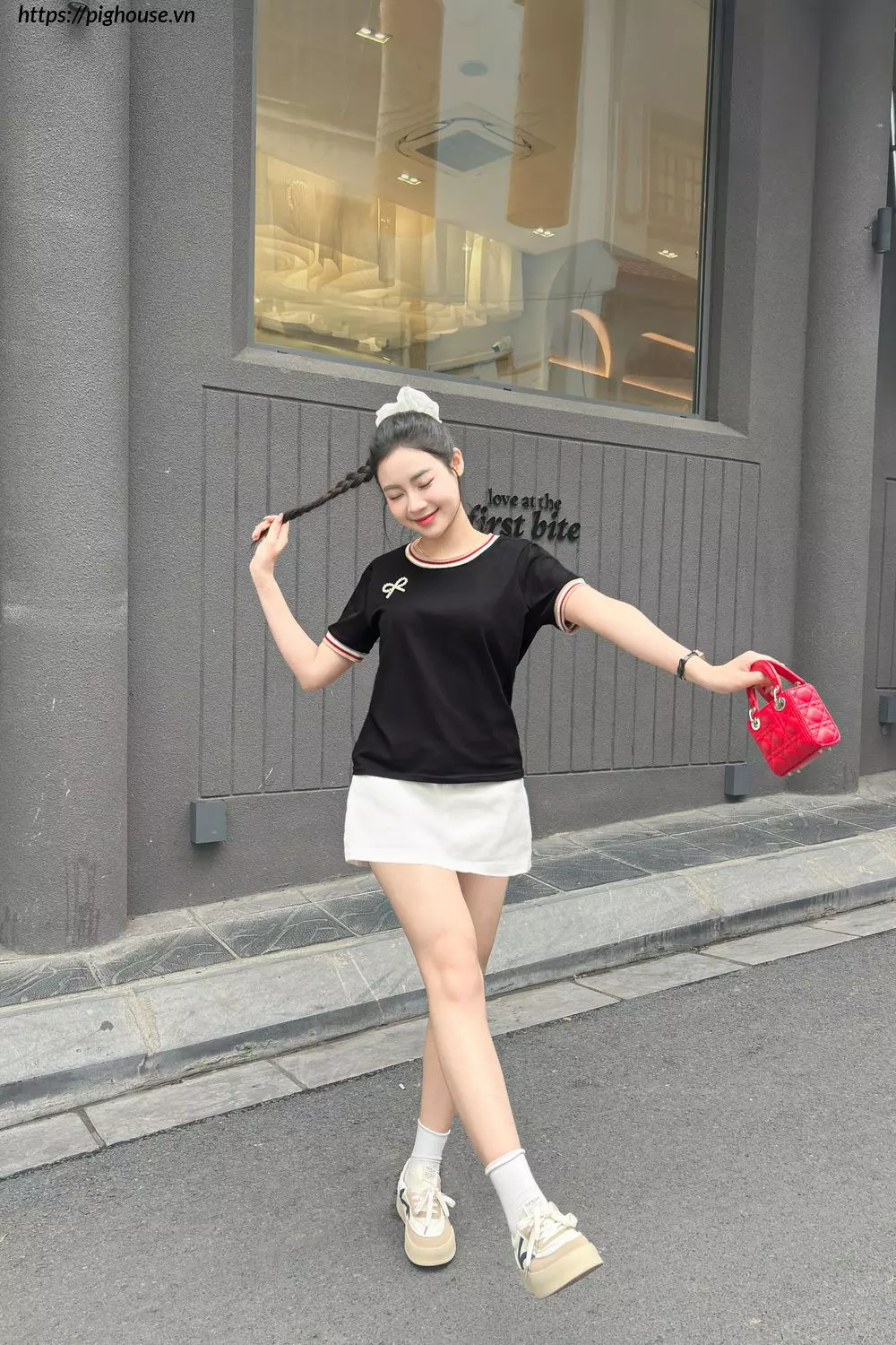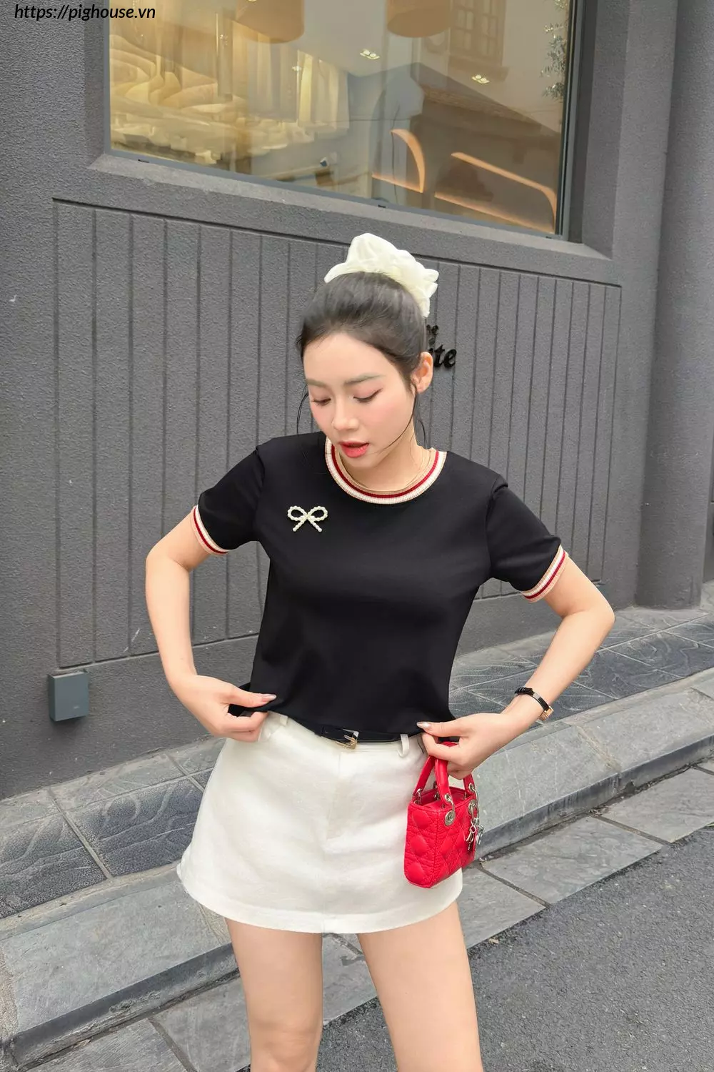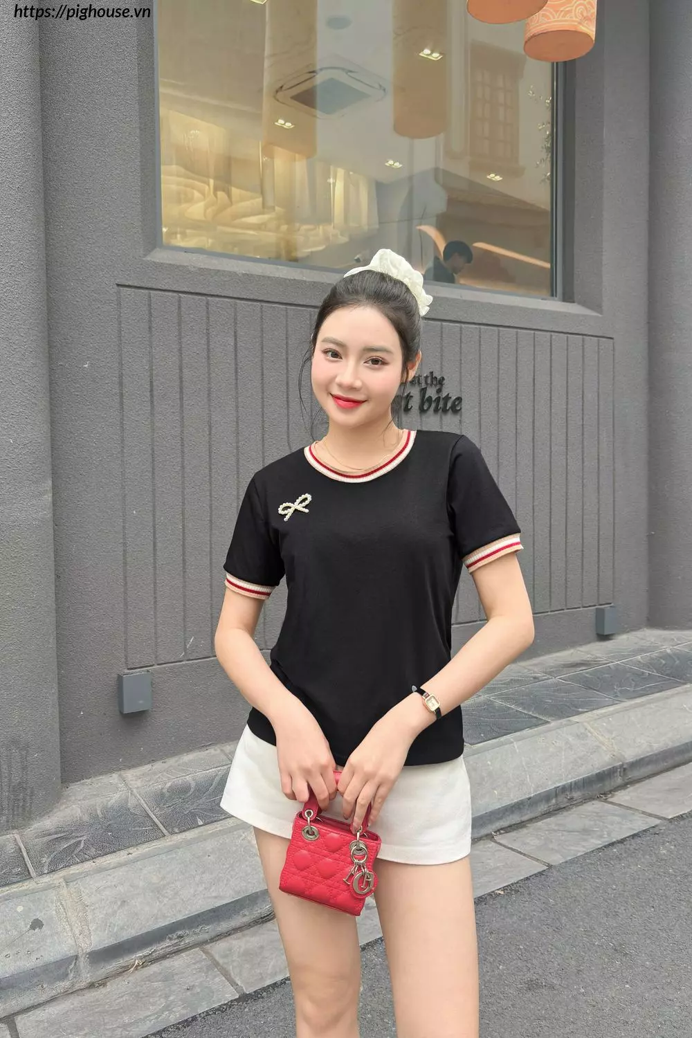 Áo Phông Cotton Bo Viền Nơ Cardina – Item Không Thể Thiếu Trong Tủ Đồ Của Nàng!