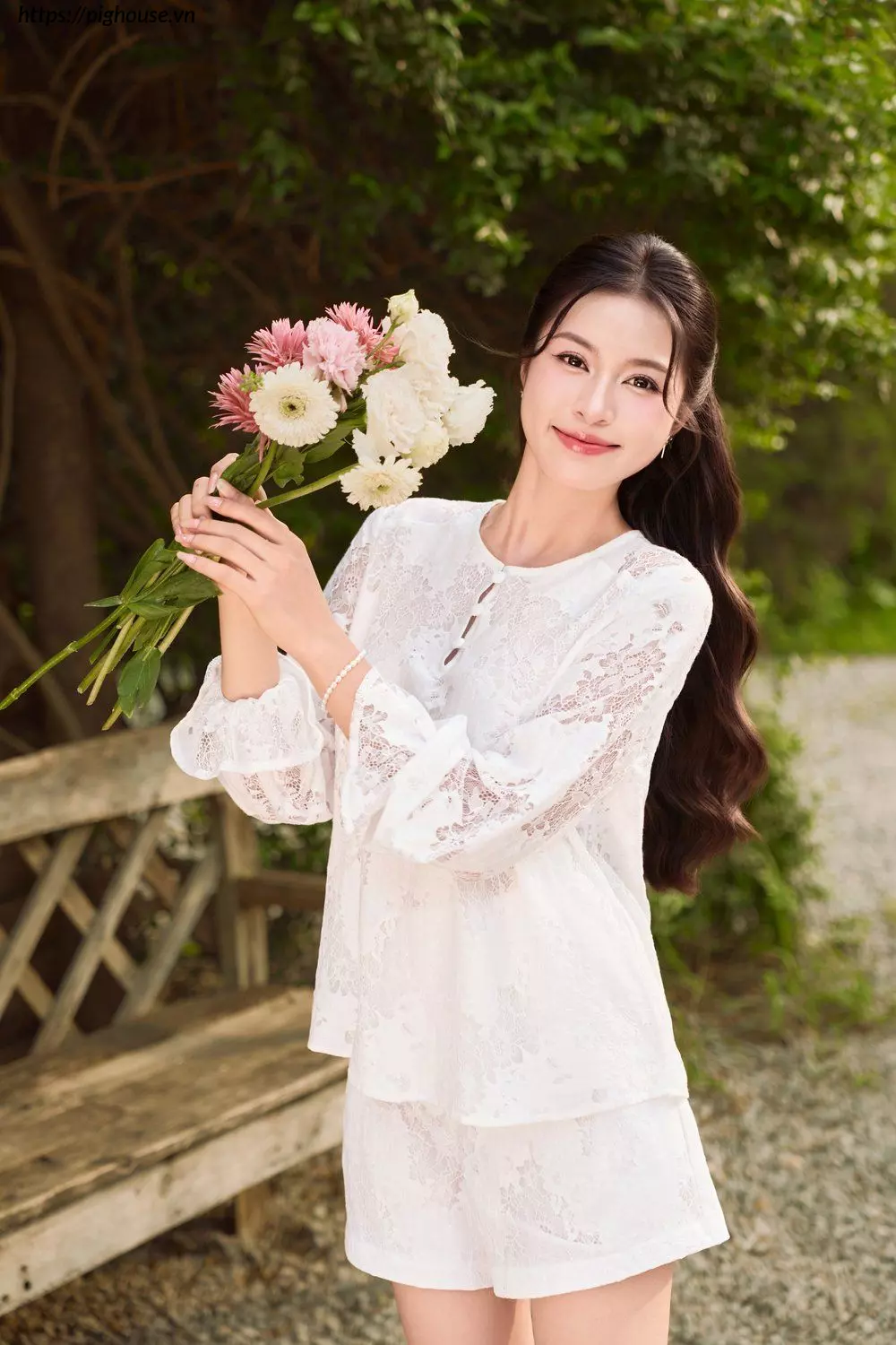 - Chất liệu cao cấp: Ren mềm mại, thoáng mát, không gây khó chịu khi mặc. Lớp lót chiffon chống lộ, tạo sự kín đáo.