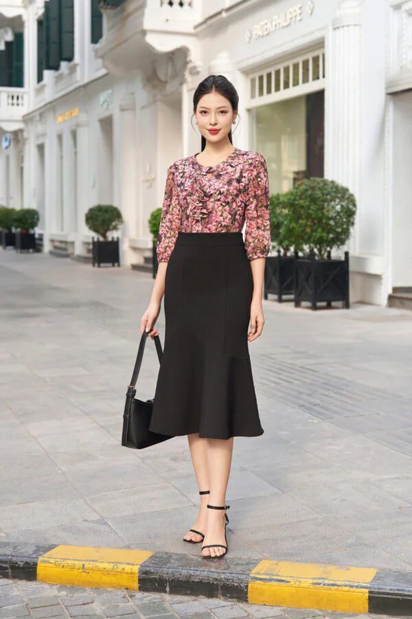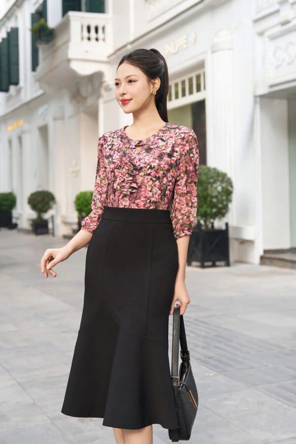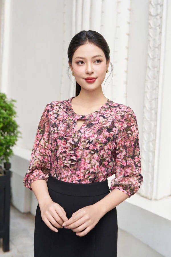 Thiết kế tinh tế, tôn dáng hoàn hảo: Dáng áo suông che khuyết điểm, tay lỡ điệu đà cùng điểm nhấn bèo hoa tinh tế tạo nên vẻ đẹp nữ tính, cuốn hút. Chiếc áo này phù hợp với nhiều hoàn cảnh khác nhau, từ công sở đến những buổi hẹn hò, dạo phố cuối tuần.