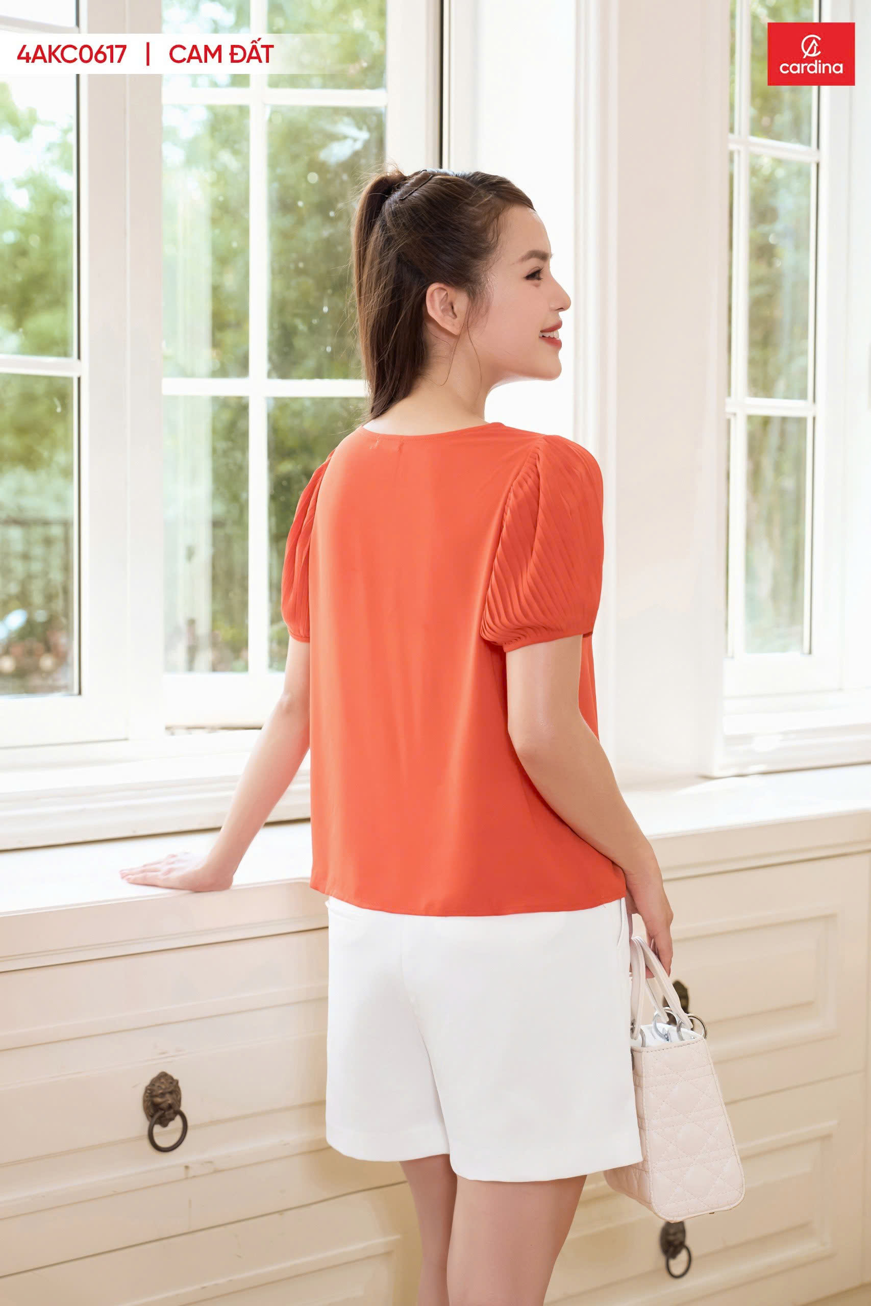 Áo Tằm Ý Tay Cộc Dập Ly Cam Đất – Thanh lịch, thoải mái, tự tin cả ngày dài