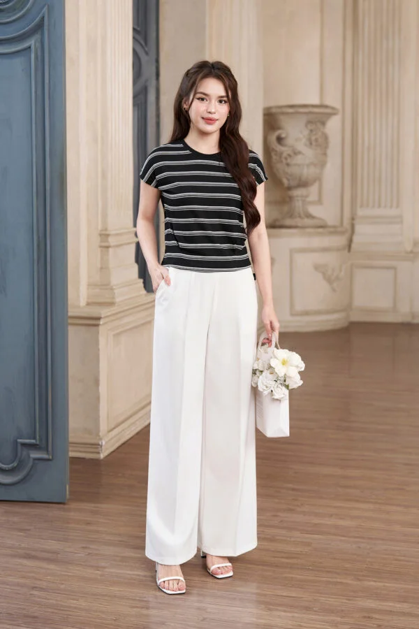 Kiểu dáng năng động: Với kiểu kẻ ngang hiện đại và trẻ trung, áo phông LU5AP06 phù hợp với nhiều phong cách khác nhau, từ năng động, cá tính đến nhẹ nhàng, nữ tính. Bạn có thể dễ dàng phối áo với quần jeans, chân váy hay quần short đều rất đẹp.