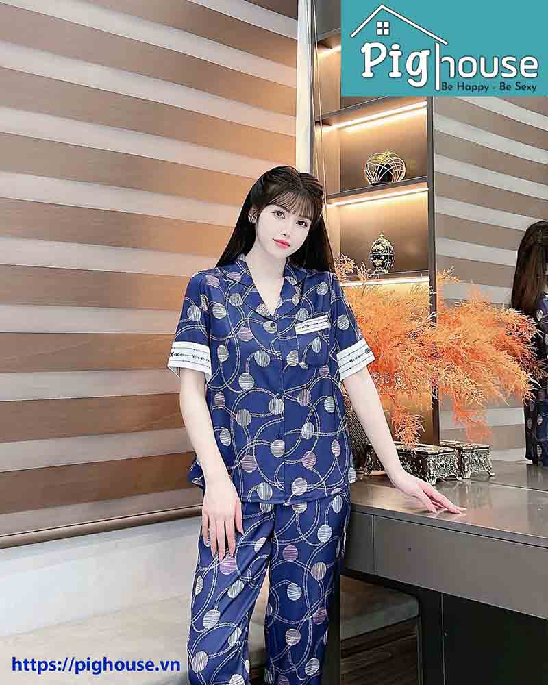 Bộ đồ mặc nhà cao cấp – Họa tiết thanh lịch, dáng nhẹ nhàng. Chất liệu Lụa Tơ Pháp siêu nhẹ cao cấp.