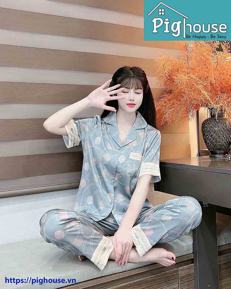 Bộ đồ mặc nhà cao cấp – Họa tiết thanh lịch, dáng nhẹ nhàng. Chất liệu Lụa Tơ Pháp siêu nhẹ cao cấp.
