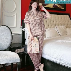 Bộ đồ mặc nhà cao cấp – Họa tiết thanh lịch, dáng nhẹ nhàng. Chất liệu Lụa Tơ Pháp siêu nhẹ cao cấp.