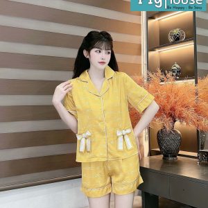 Bộ đồ mặc nhà cao cấp – Họa tiết thanh lịch, dáng nhẹ nhàng. Chất liệu Lụa Tơ Pháp siêu nhẹ cao cấp.