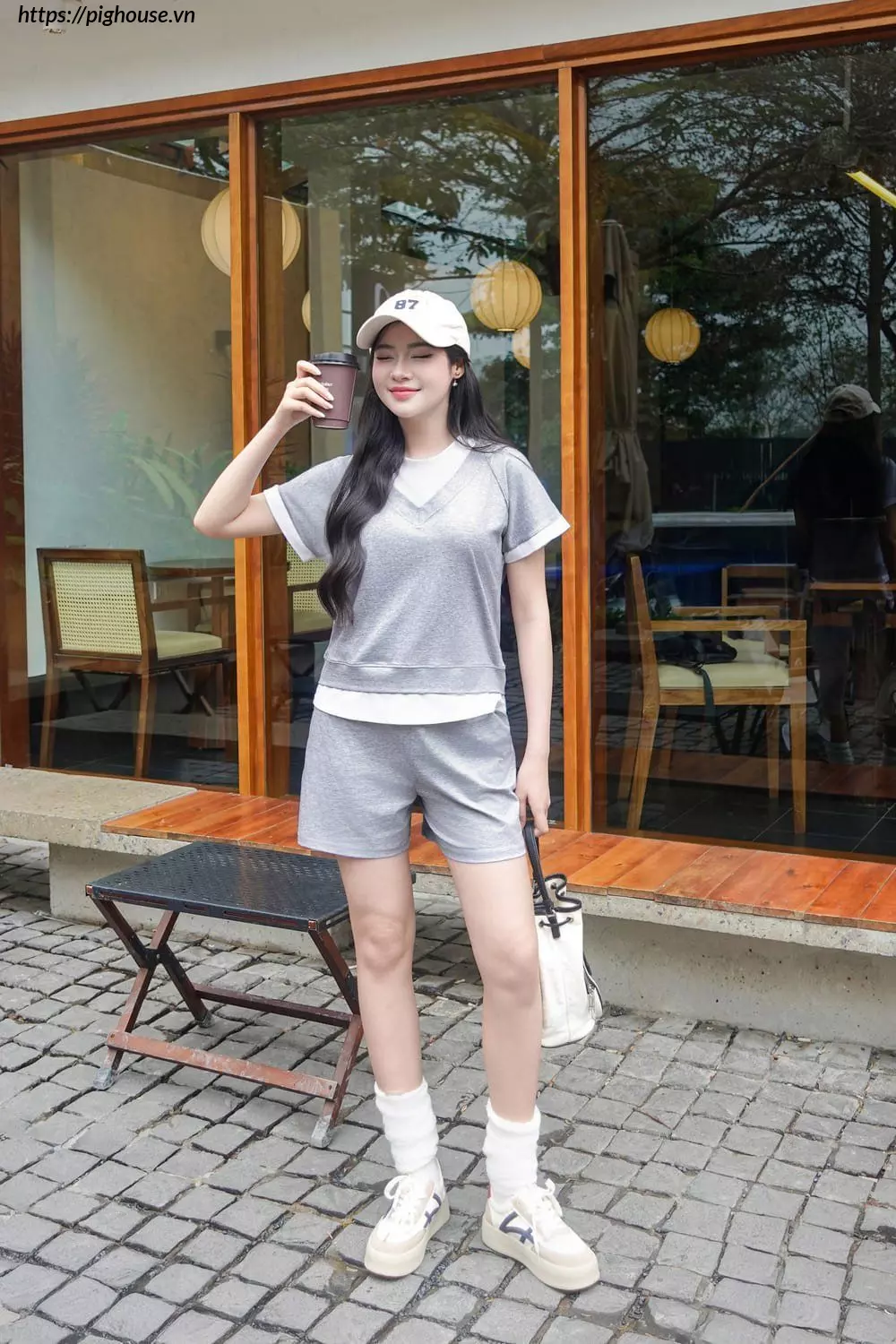 * **Dễ dàng phối đồ:** Bạn có thể kết hợp bộ đùi với áo thun, áo croptop hoặc áo sơ mi để tạo nên những set đồ đa dạng.