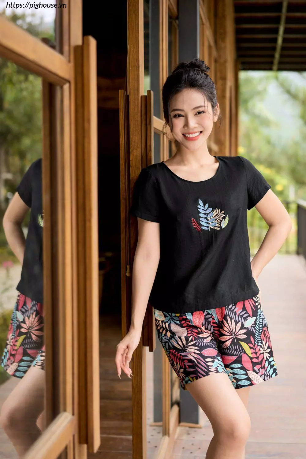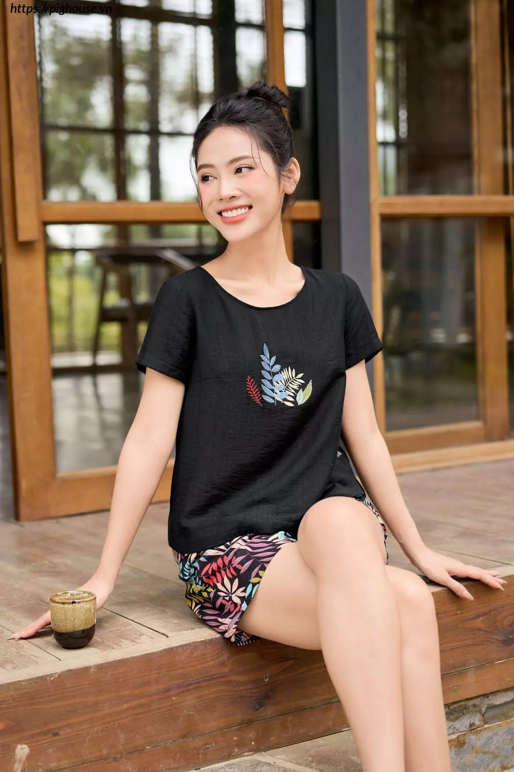 - Quần đùi năng động: Thoải mái vận động, phù hợp với mọi hoạt động tại nhà.