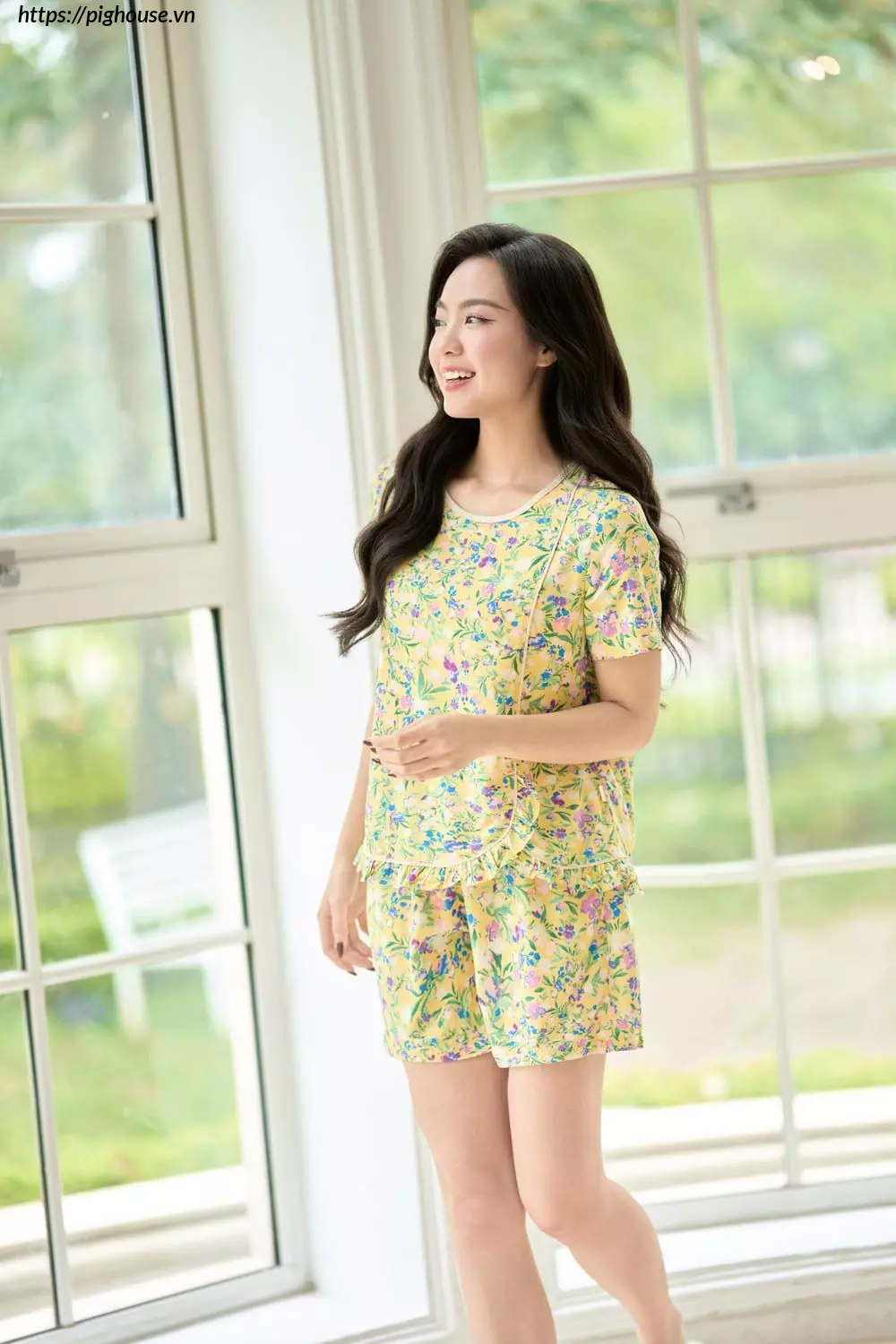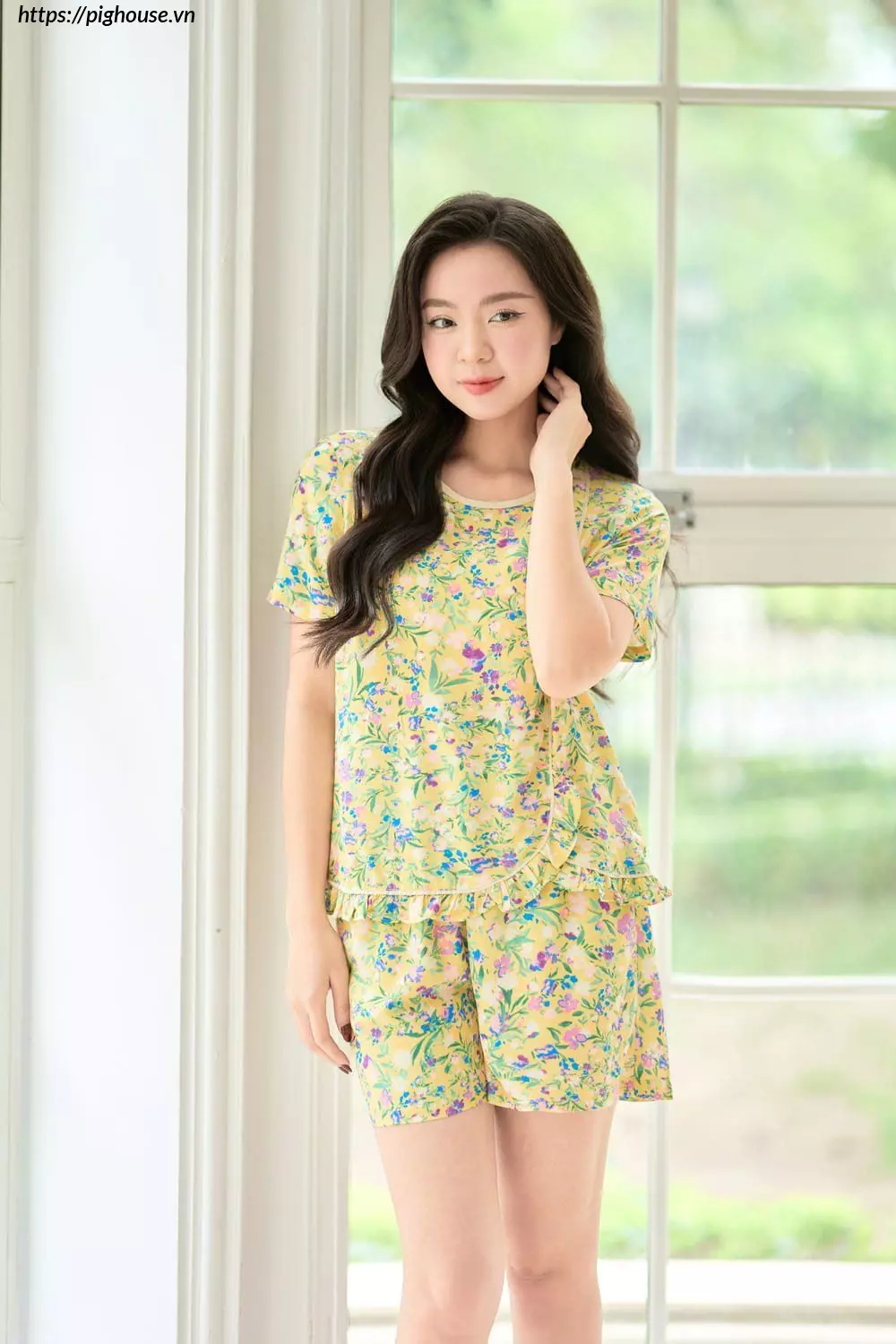 - Thiết kế xinh xắn: Gấu áo và quần được thiết kế bèo nhún điệu đà, tăng thêm vẻ nữ tính và đáng yêu cho người mặc.