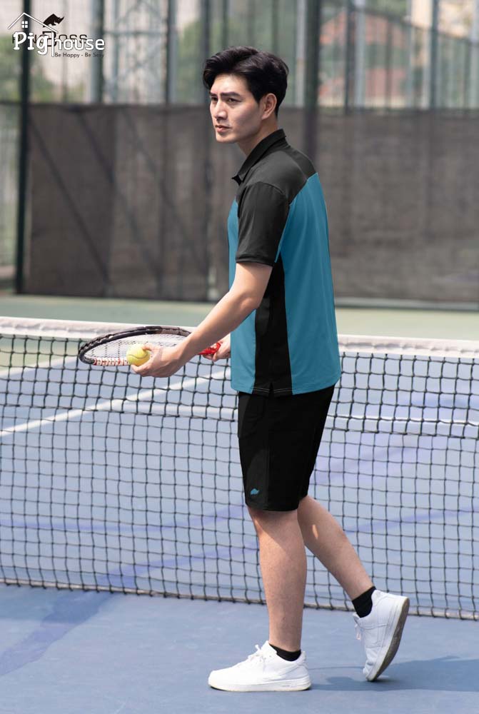 Bộ nam cổ Polo Rinoboss BNA492 Xanh phối đen. Mua bộ đồ nam tại gọi ngay 0763147866.