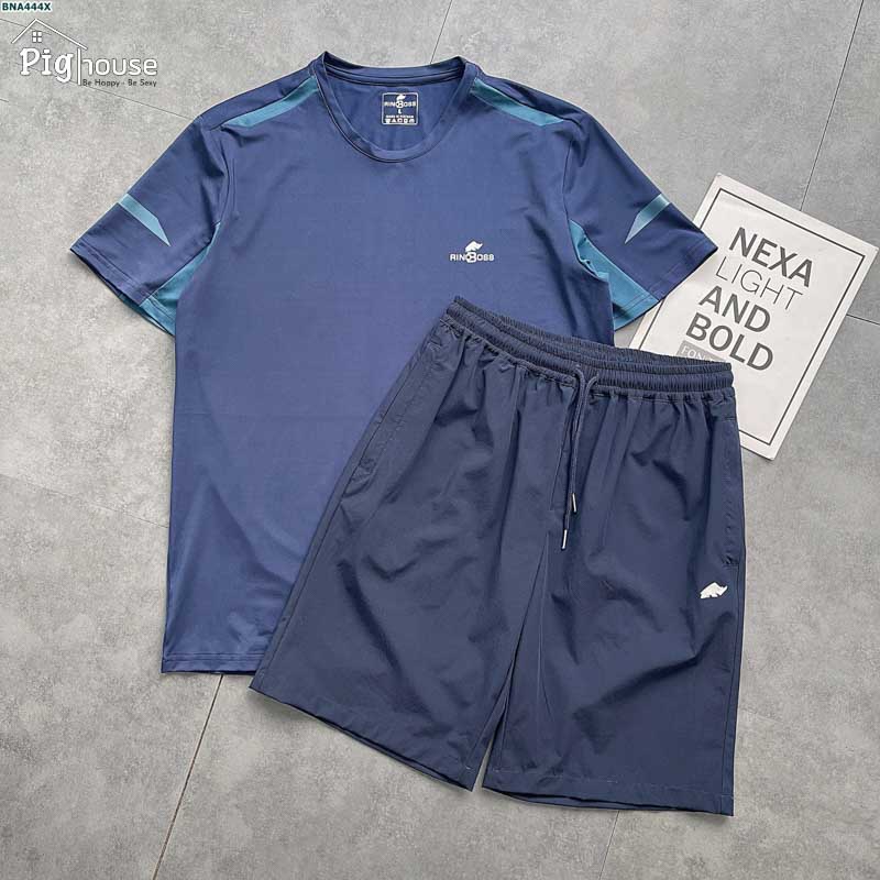 Bộ nam cổ tròn Rinoboss BNA444X navi phối vai.