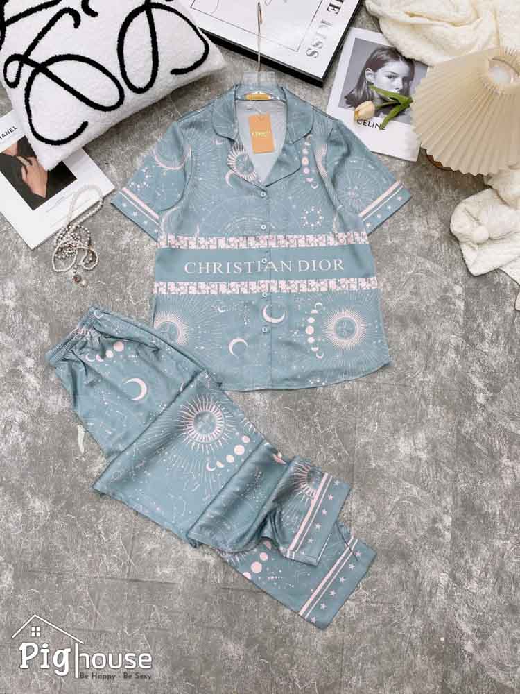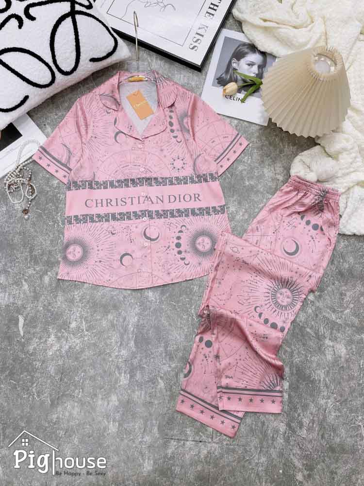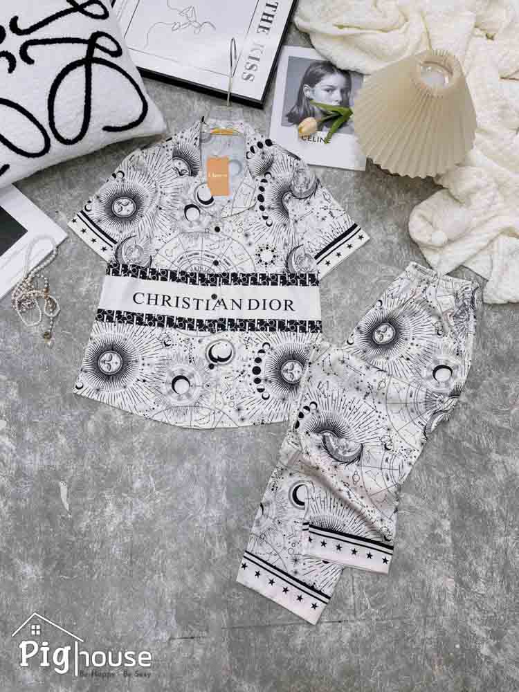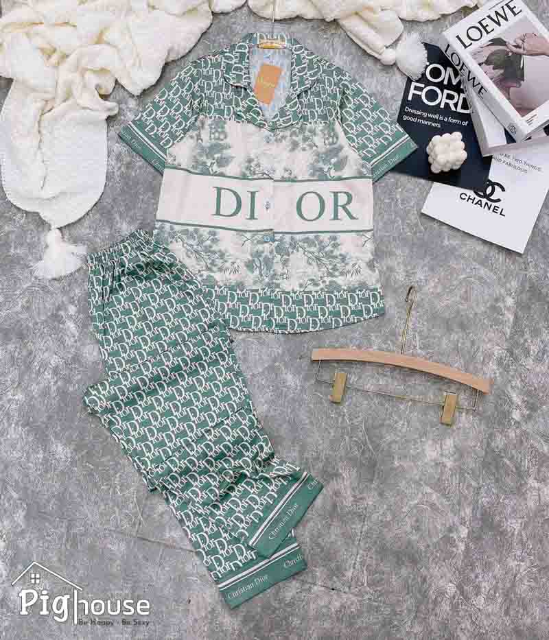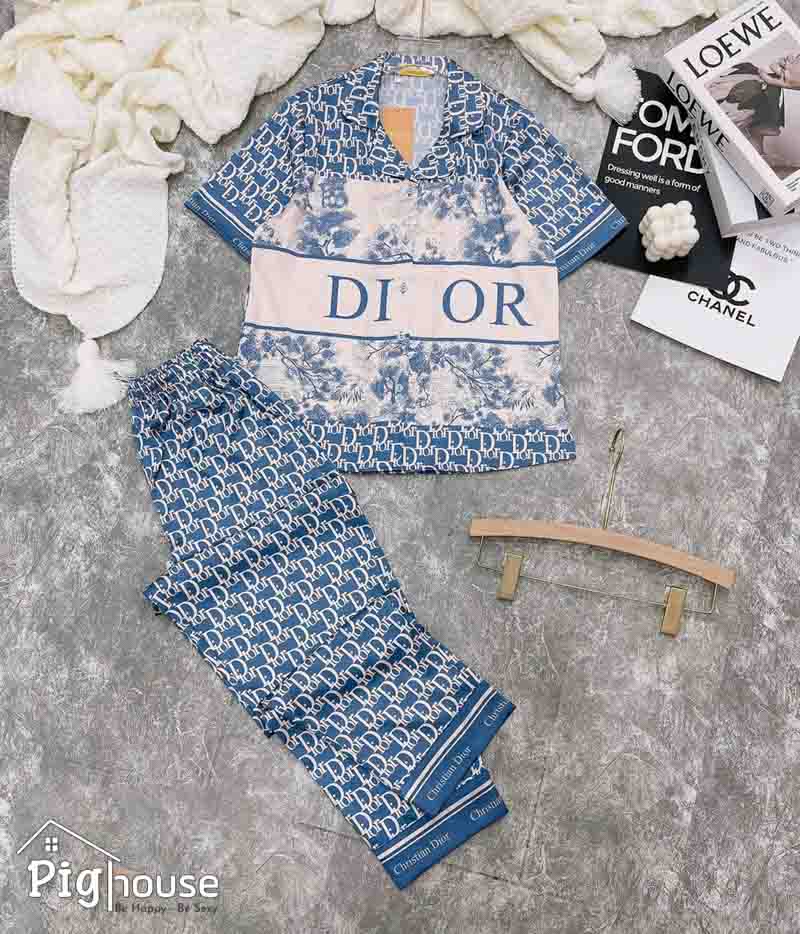 Bộ pijama dài chữ Dior choco – Chất liệu lụa luxury – Size SML