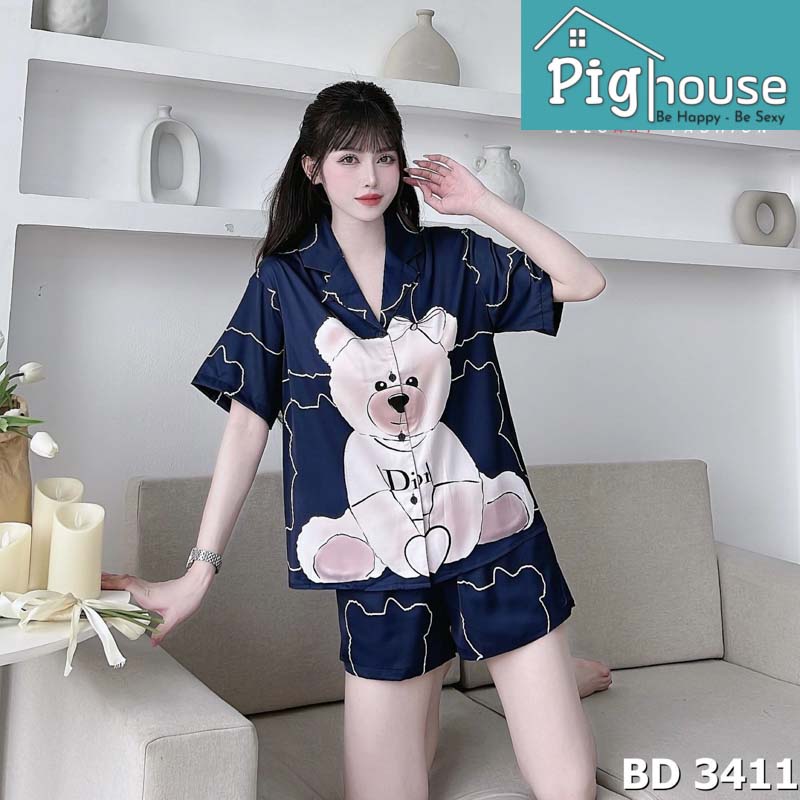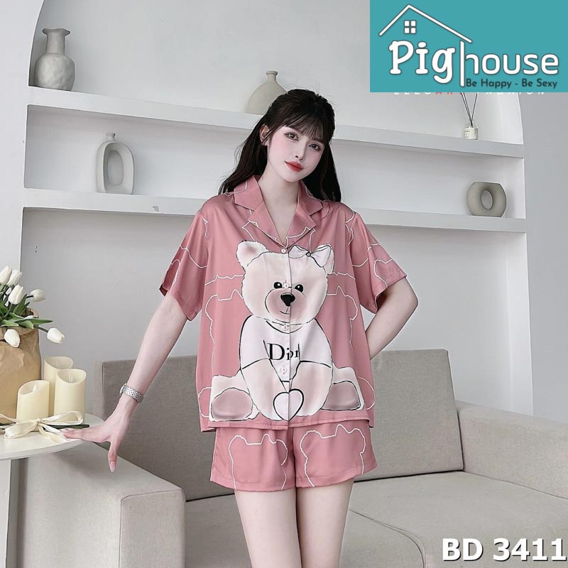 Bộ pijama đùi in hình gấu Dior có đủ size S, M, L phù hợp với mọi kích cỡ cơ thể.