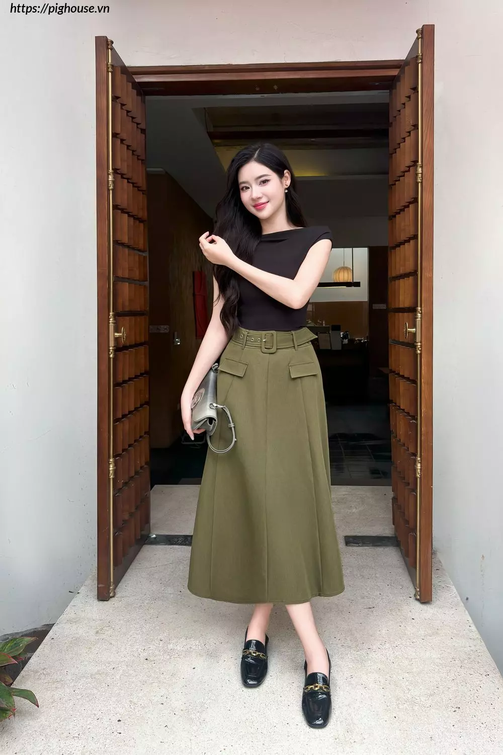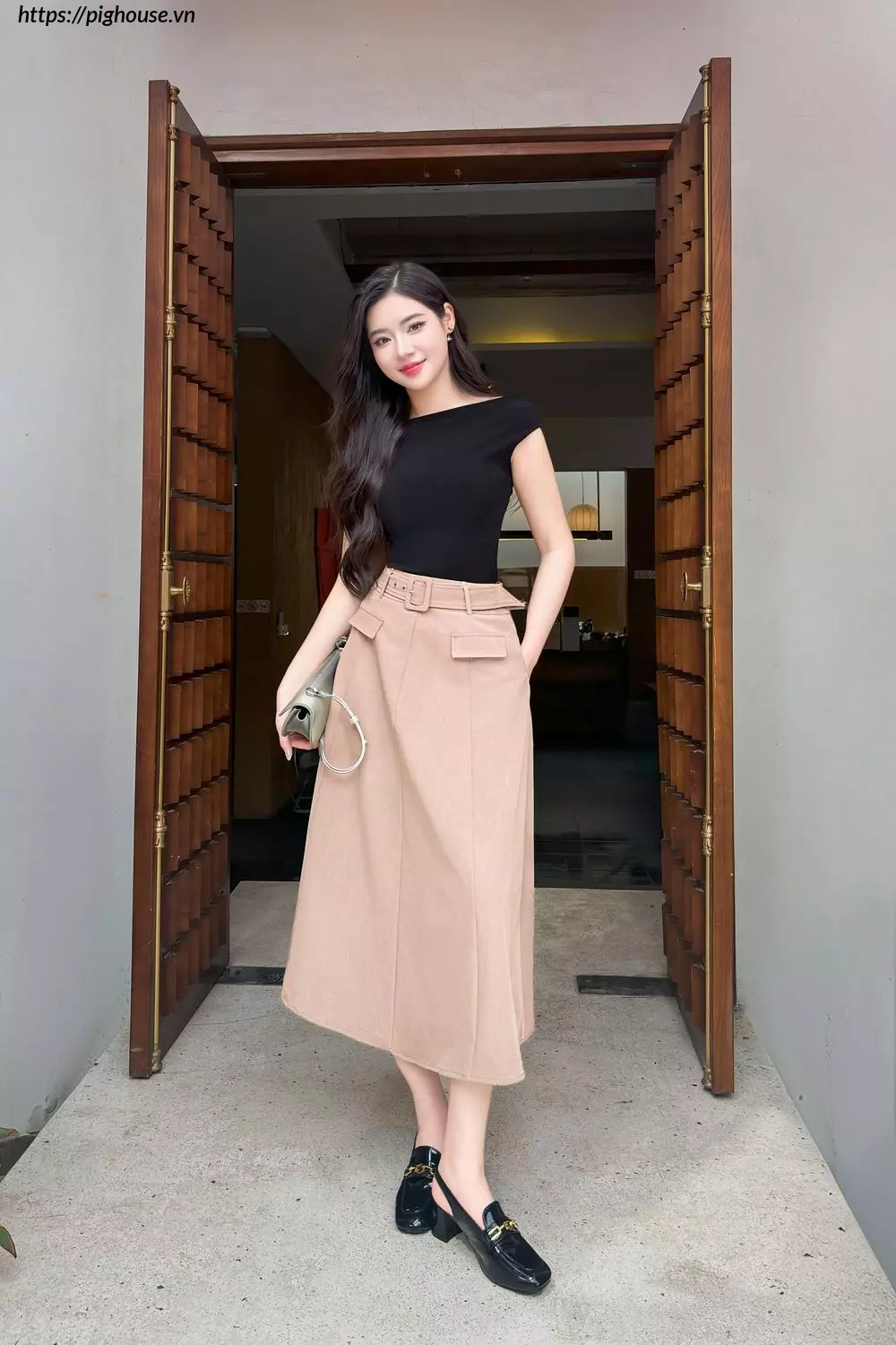 - Thanh lịch và nữ tính: Chiều dài midi mang đến vẻ đẹp dịu dàng, phù hợp với nhiều hoàn cảnh.