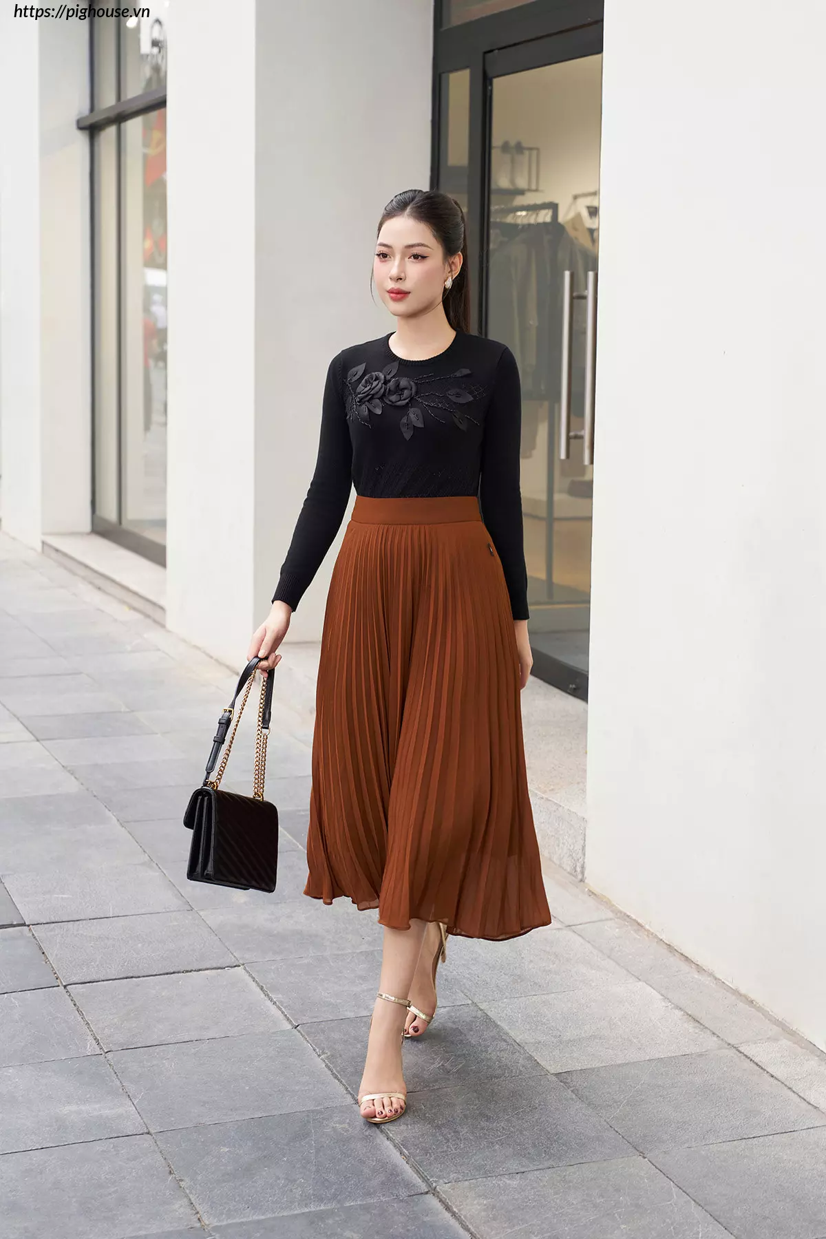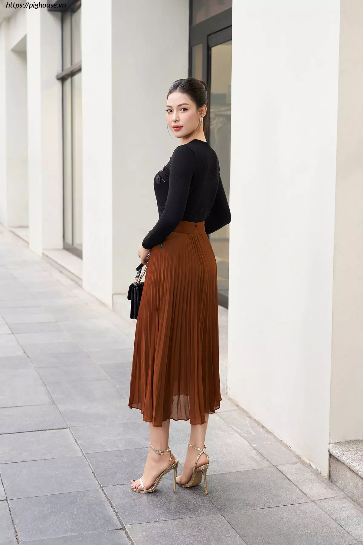 - Dễ dàng phối đồ: Chân váy xếp ly có thể kết hợp với nhiều loại áo khác nhau như áo sơ mi, áo thun, áo kiểu…