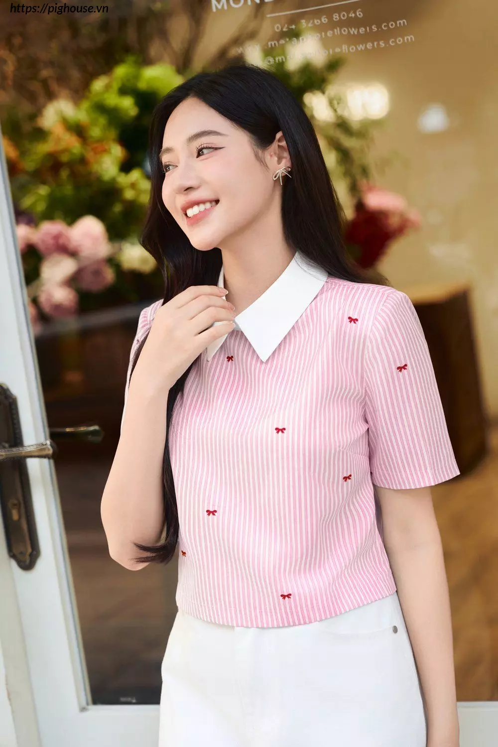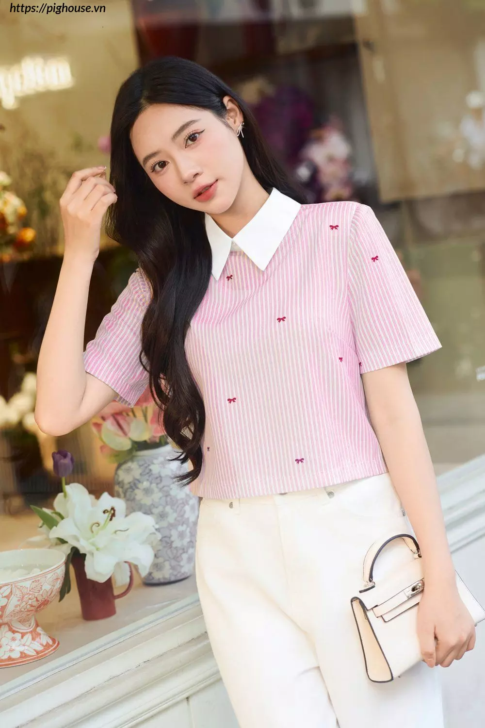Croptop Sơ Mi Kẻ Nơ – Nét Đẹp Năng Động Cho Nàng