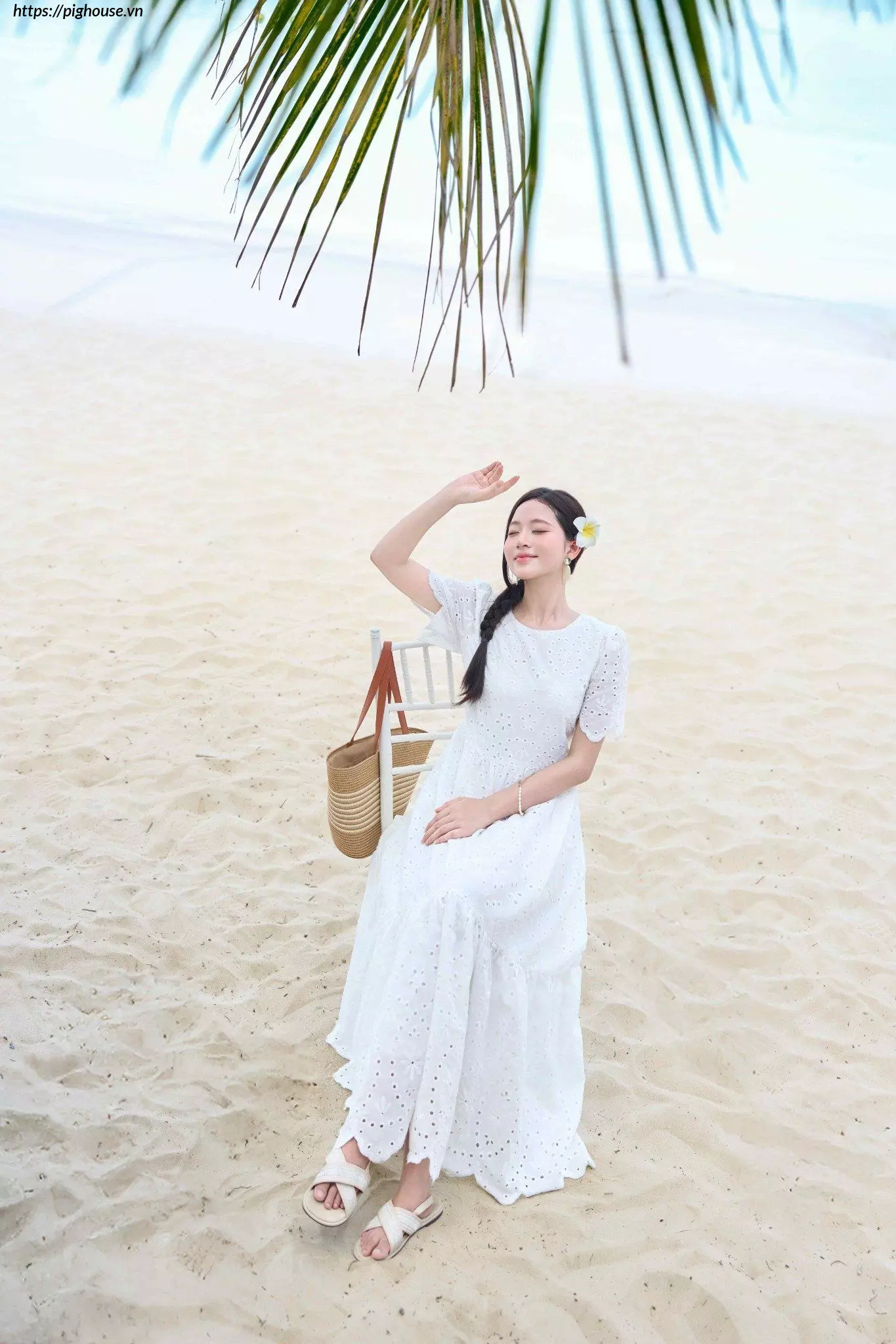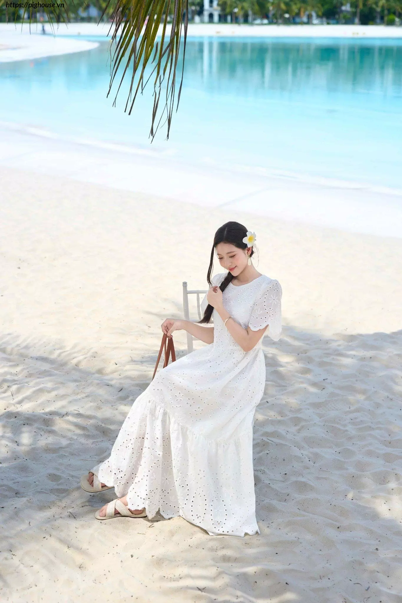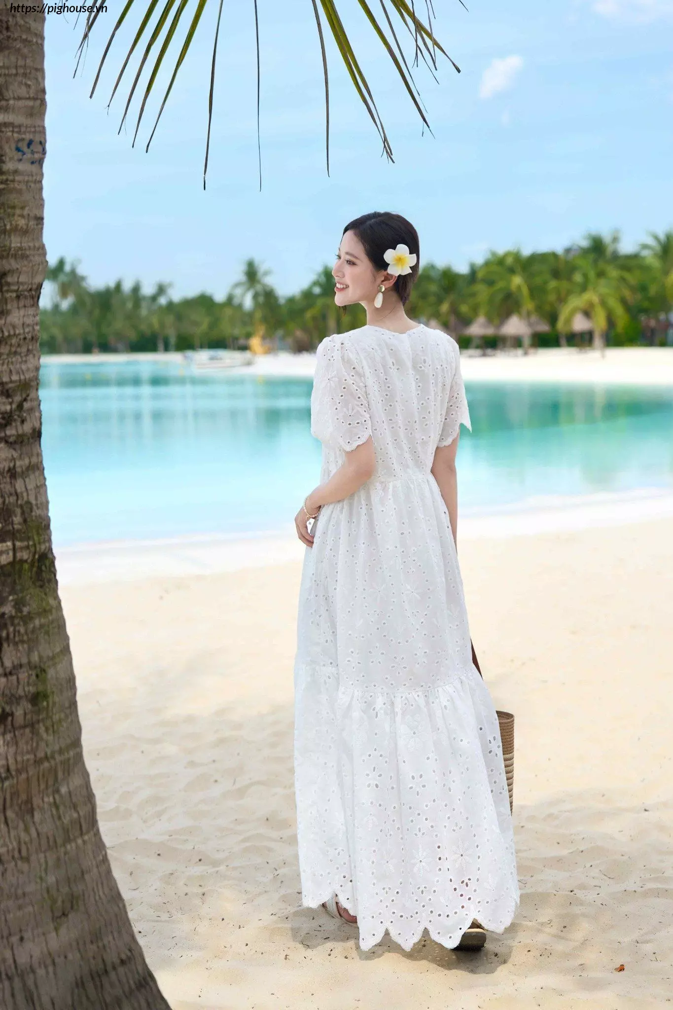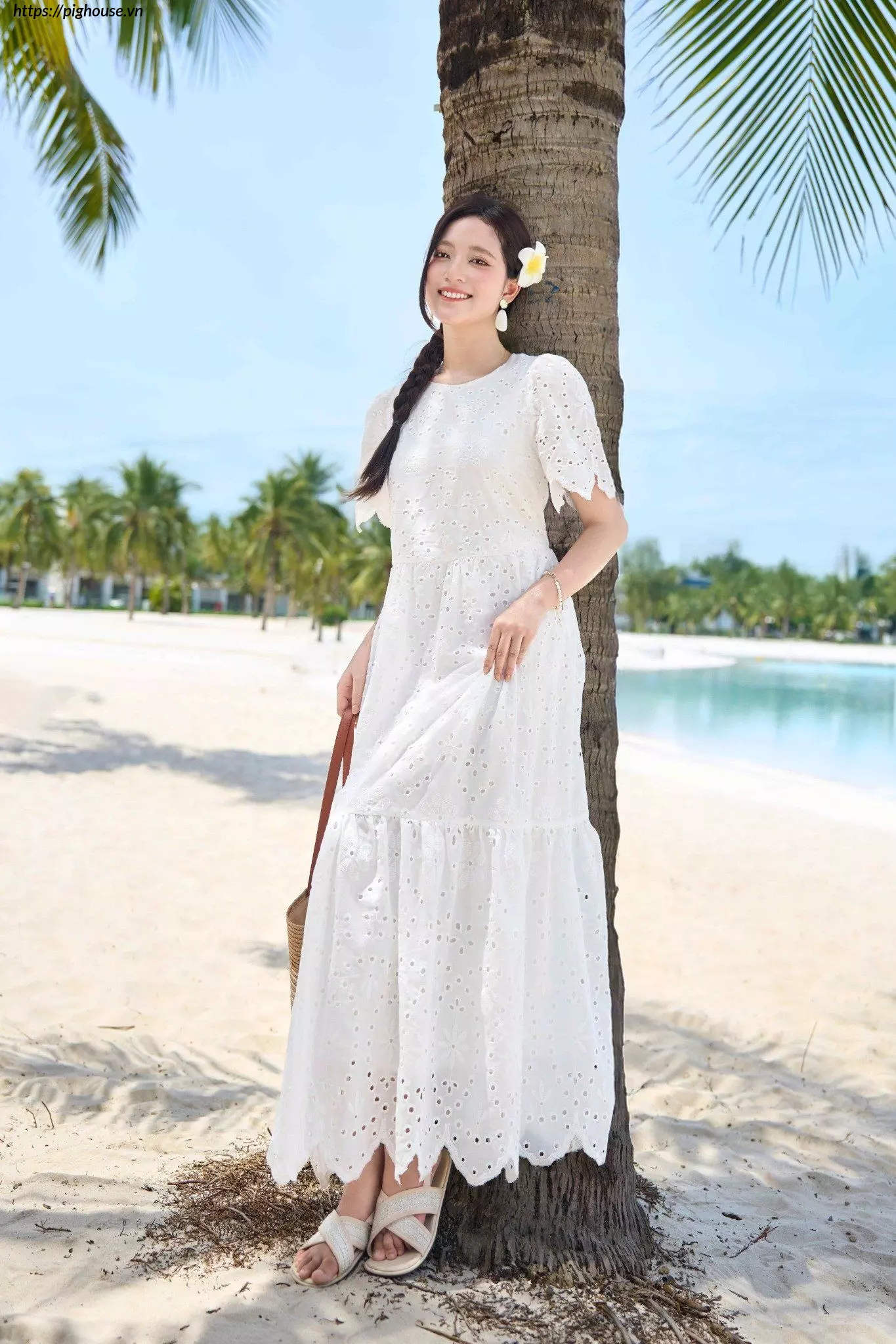 - Họa tiết thêu đục lỗ tinh tế: Điểm nhấn này giúp chiếc đầm trở nên độc đáo và thu hút hơn.
