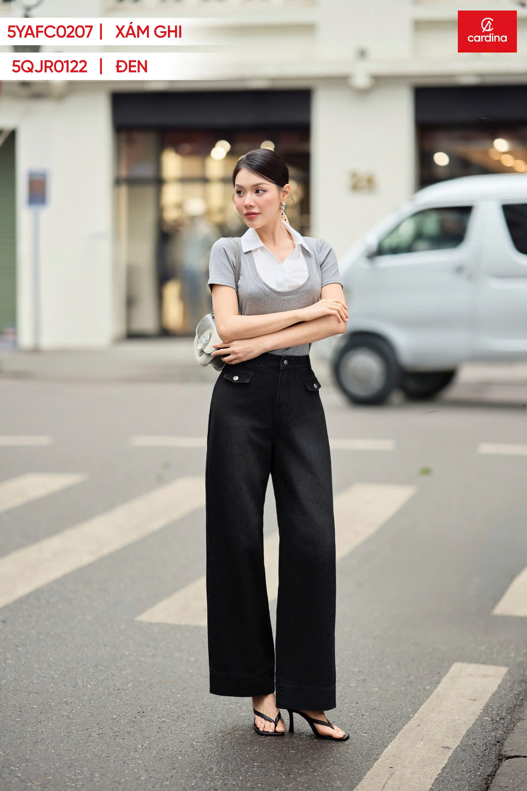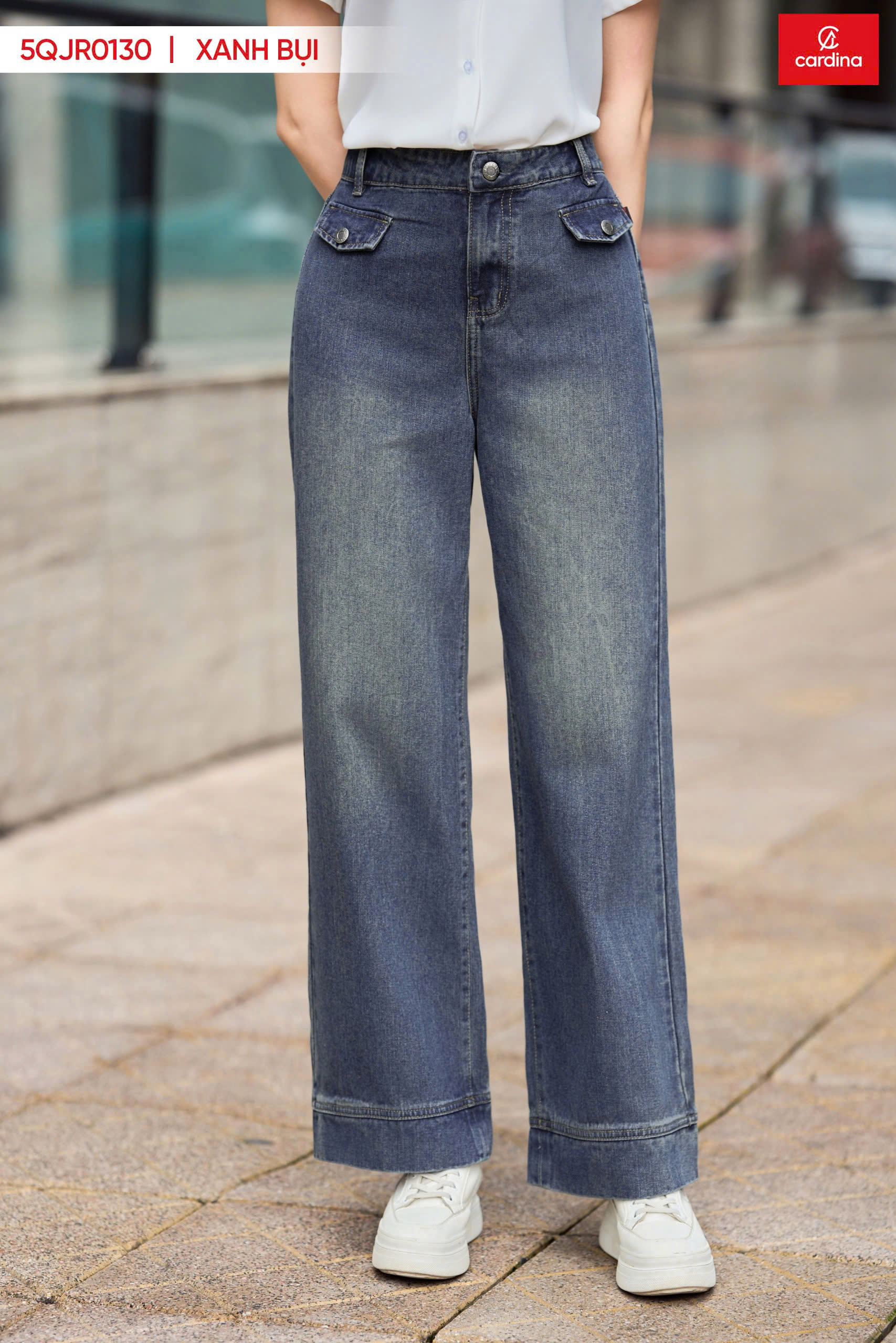 * **Phong cách thanh lịch:** Kết hợp Jeans Trendy với áo sơ mi trắng và giày cao gót.