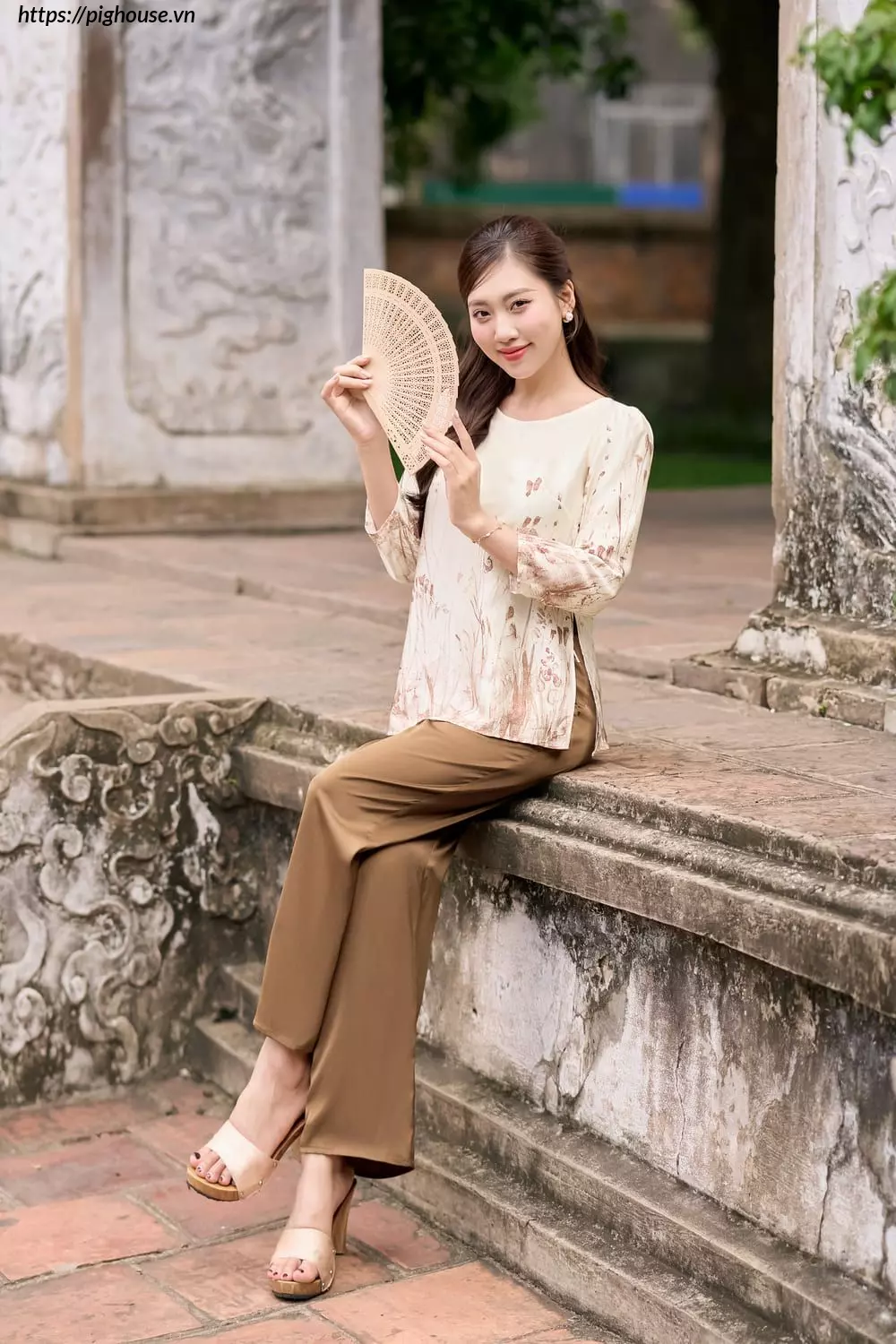 Thiết kế cổ tròn kín đáo, xẻ sườn nhẹ nhàng tạo sự duyên dáng. Vừa dễ hoạt động lại toát lên vẻ thanh lịch, trang nhã.