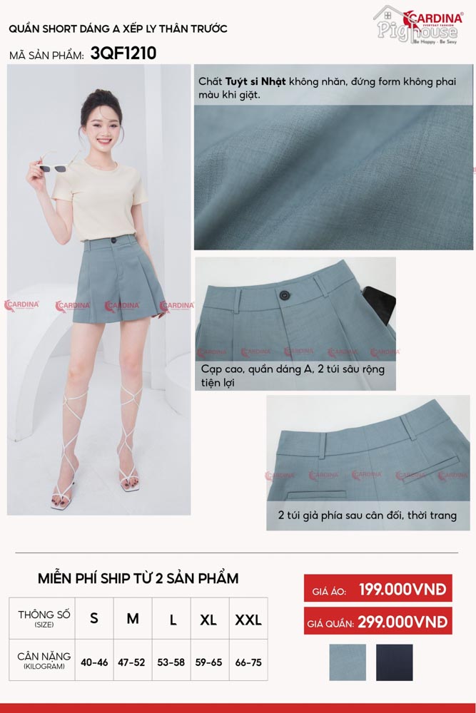 Quần Short Cardina dáng chữ A xếp ly thân trước 3QF12 – Thời trang thoải mái và tôn chân xinh