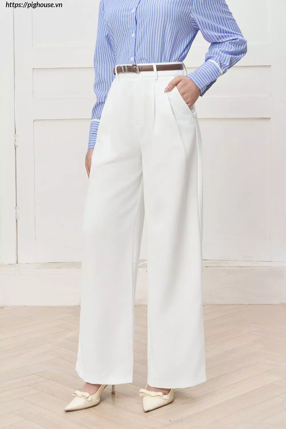 - Thiết kế trendy: Quần suông ống rộng giúp che khuyết điểm và tôn dáng hiệu quả.