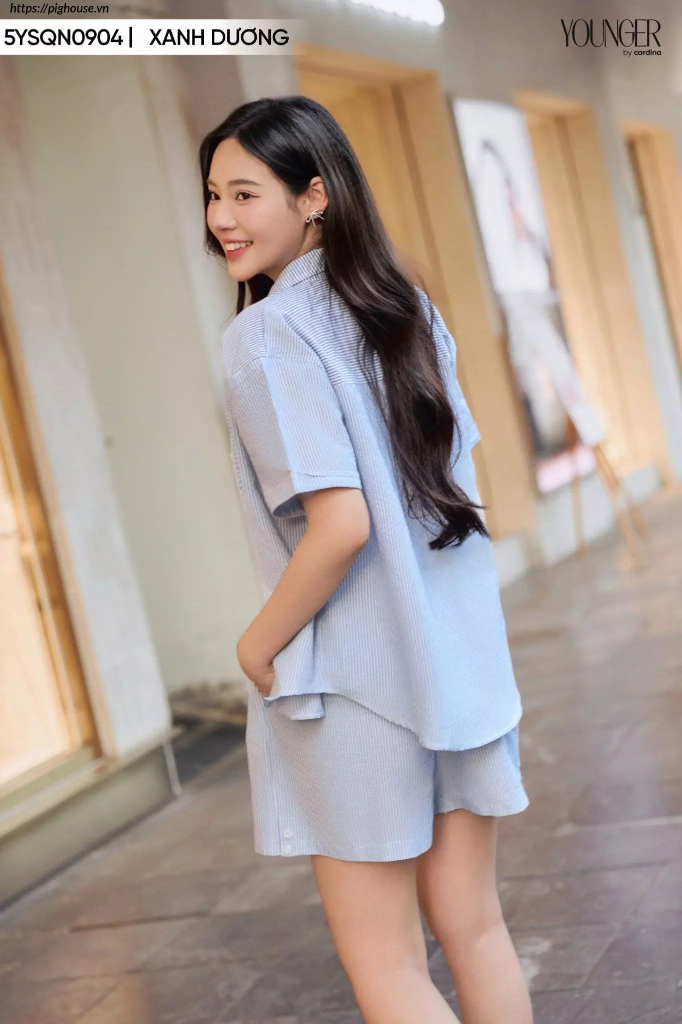 Diện set bộ thô kẻ quần sooc Cardina như thế nào?
