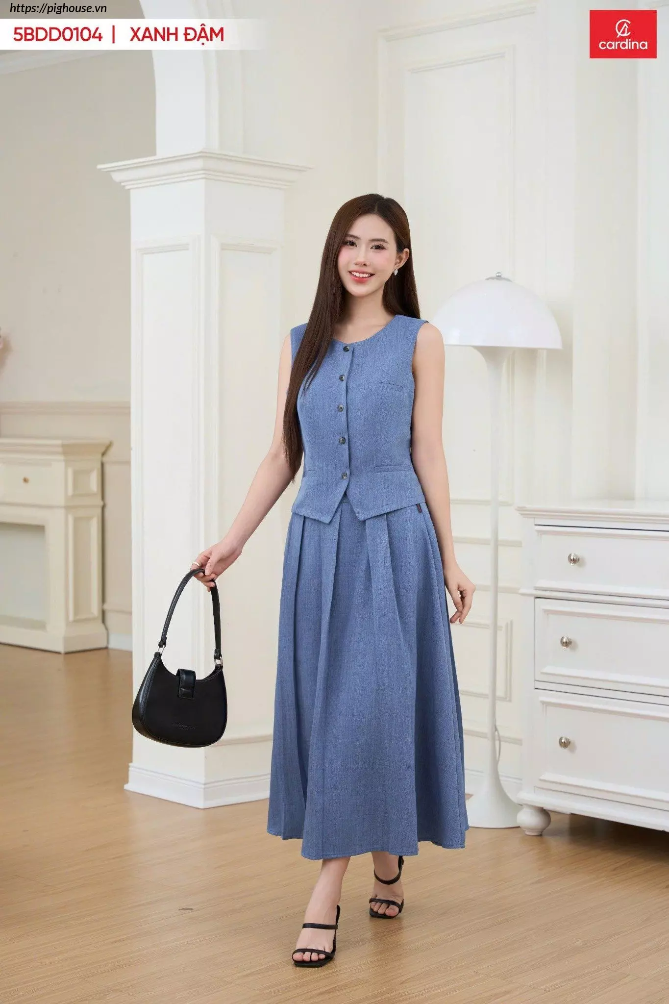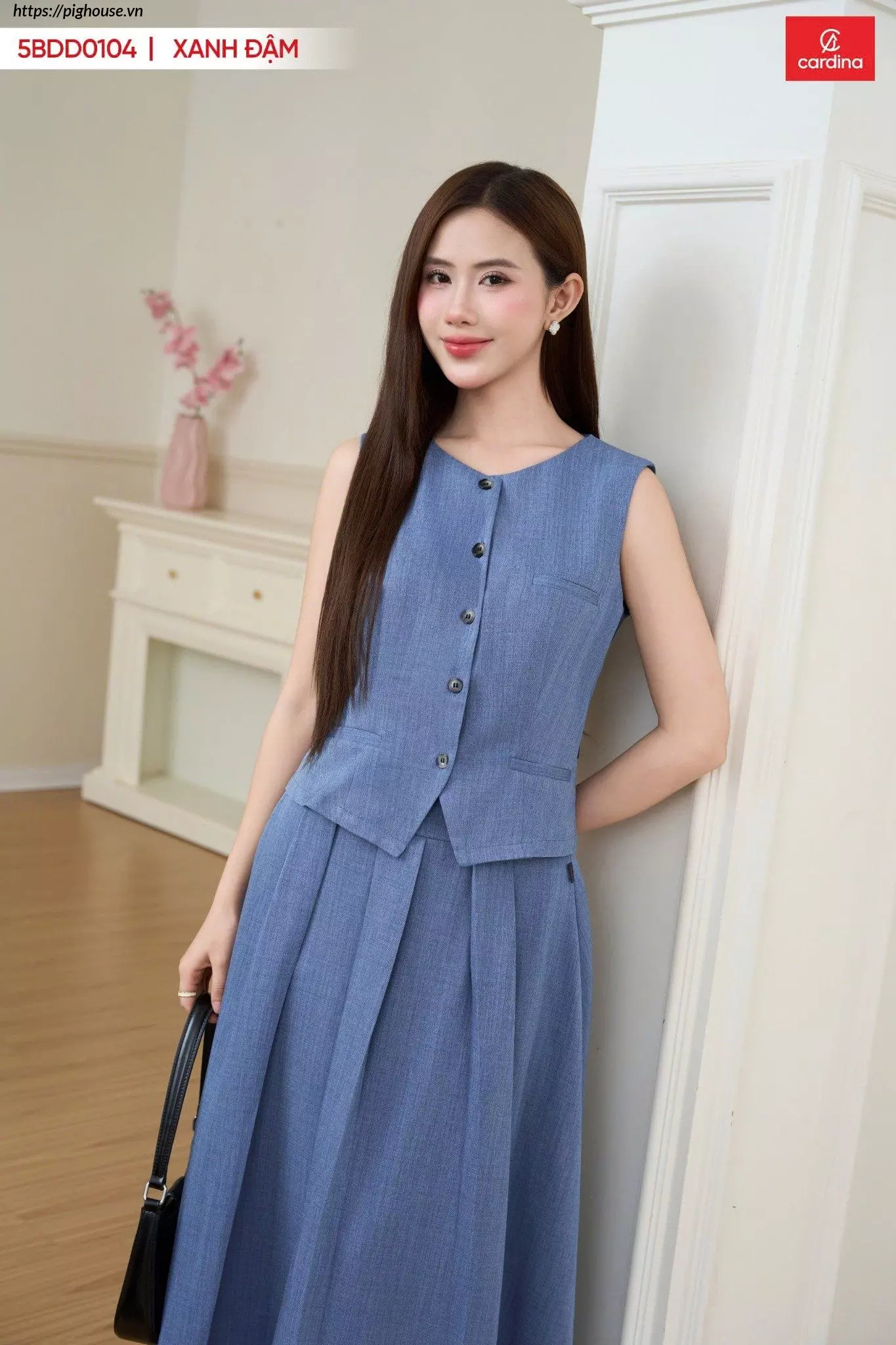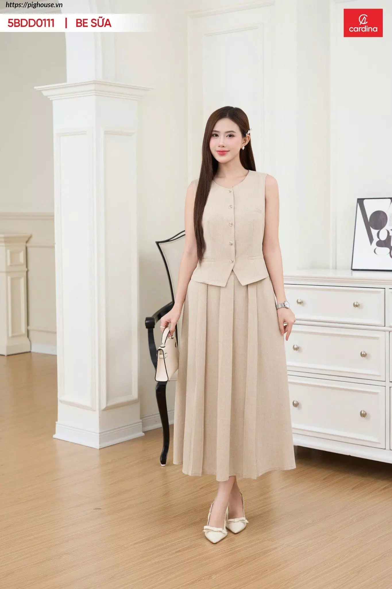 * **Thiết kế tinh tế:** Áo gile thanh lịch, dễ dàng phối đồ. Chân váy midi xếp ly nữ tính, tôn dáng.